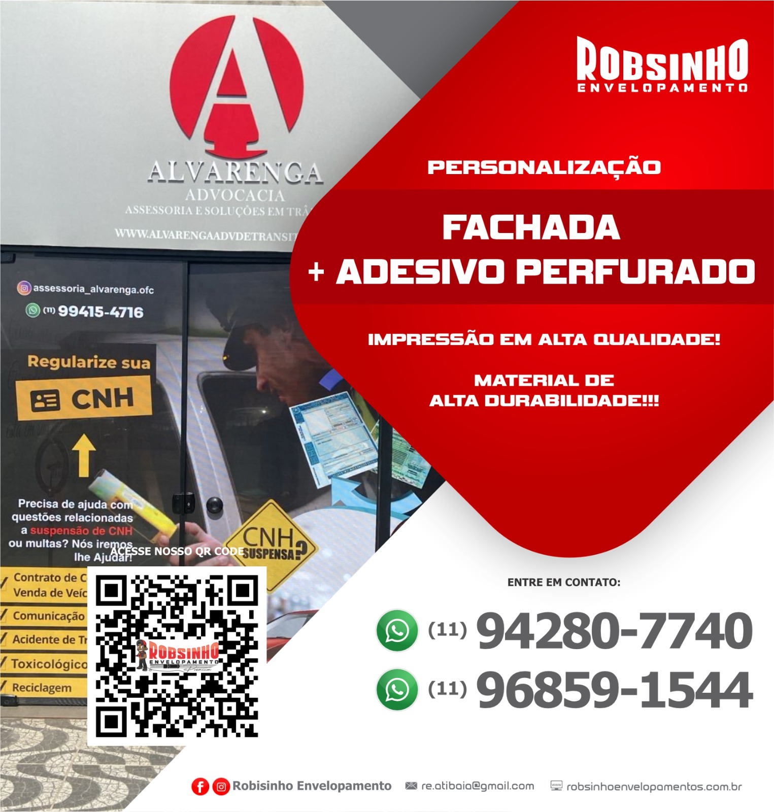 Confira abaixo alguns dos serviços executados pela Robsinho Envelopamentos e Comunicação Visual! Aproveite e realize também um orçamento pelo nosso WhatsApp: (11) 94280-7740.