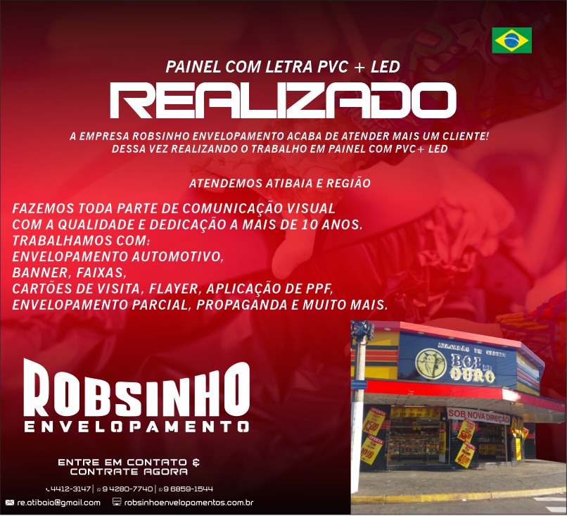 Confira abaixo alguns dos serviços executados pela Robsinho Envelopamentos e Comunicação Visual! Aproveite e realize também um orçamento pelo nosso WhatsApp: (11) 94280-7740.