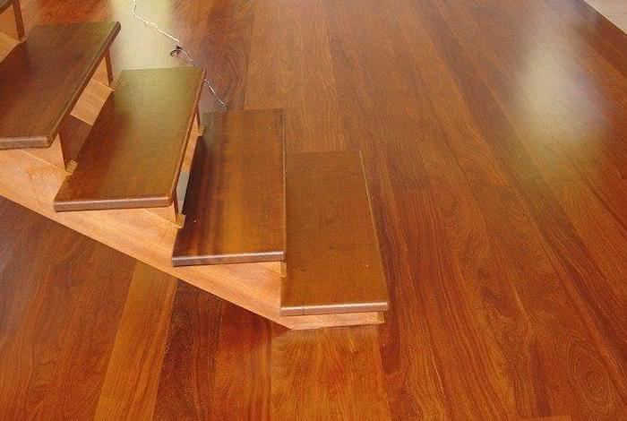 Quem não gosta de madeira com muito brilho pode escolher uma opção intermediária, ou seja, o sinteco acetinado. Ele deixa o piso de madeira com um visual mais discreto e não chama tanta atenção. É muito indicado para áreas com grande circulação de pessoas e escadas.