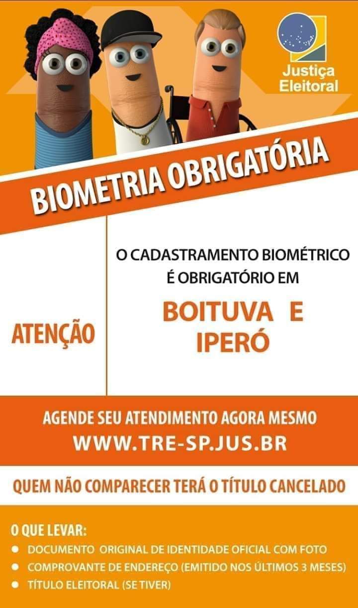 Biometria obrigatória agora para a cidade de boituva, atendimento com horario agendado.