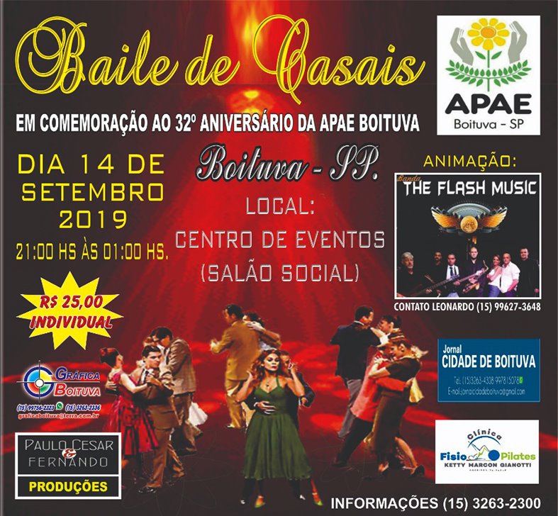 A APAE de Boituva está completando 32 anos e, para comemorar a data, vai promover um grande Baile de Casais.