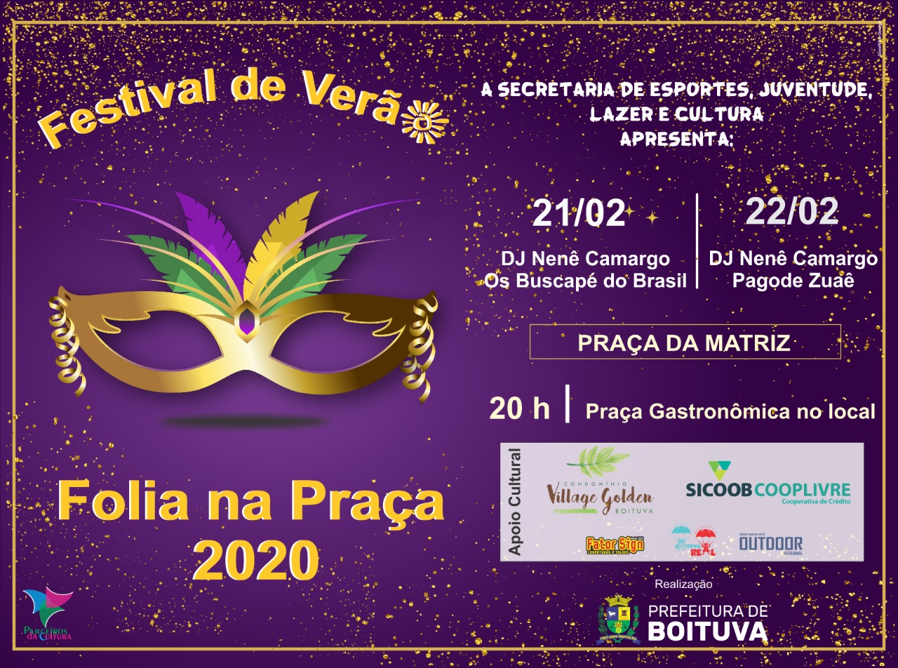 Para quem gosta de folia, a Prefeitura de Boituva realiza, através da Secretaria de Esportes, Juventude, Lazer e Cultura, o Iº Folia na Praça.
