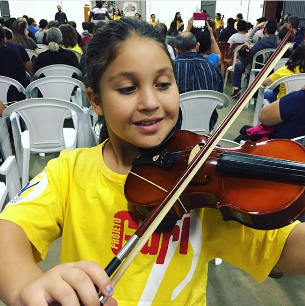 Segundo o fotógrafo e representante comercial Sidney Trovão, pai de Anamaria Hebeler Trovão, 8 anos, (foto abaixo) o projeto garantiu à sua filha pleno aprendizado em violino e atualmente assistir ela em apresentações é um momento aguardado por toda a família ao longo do ano.