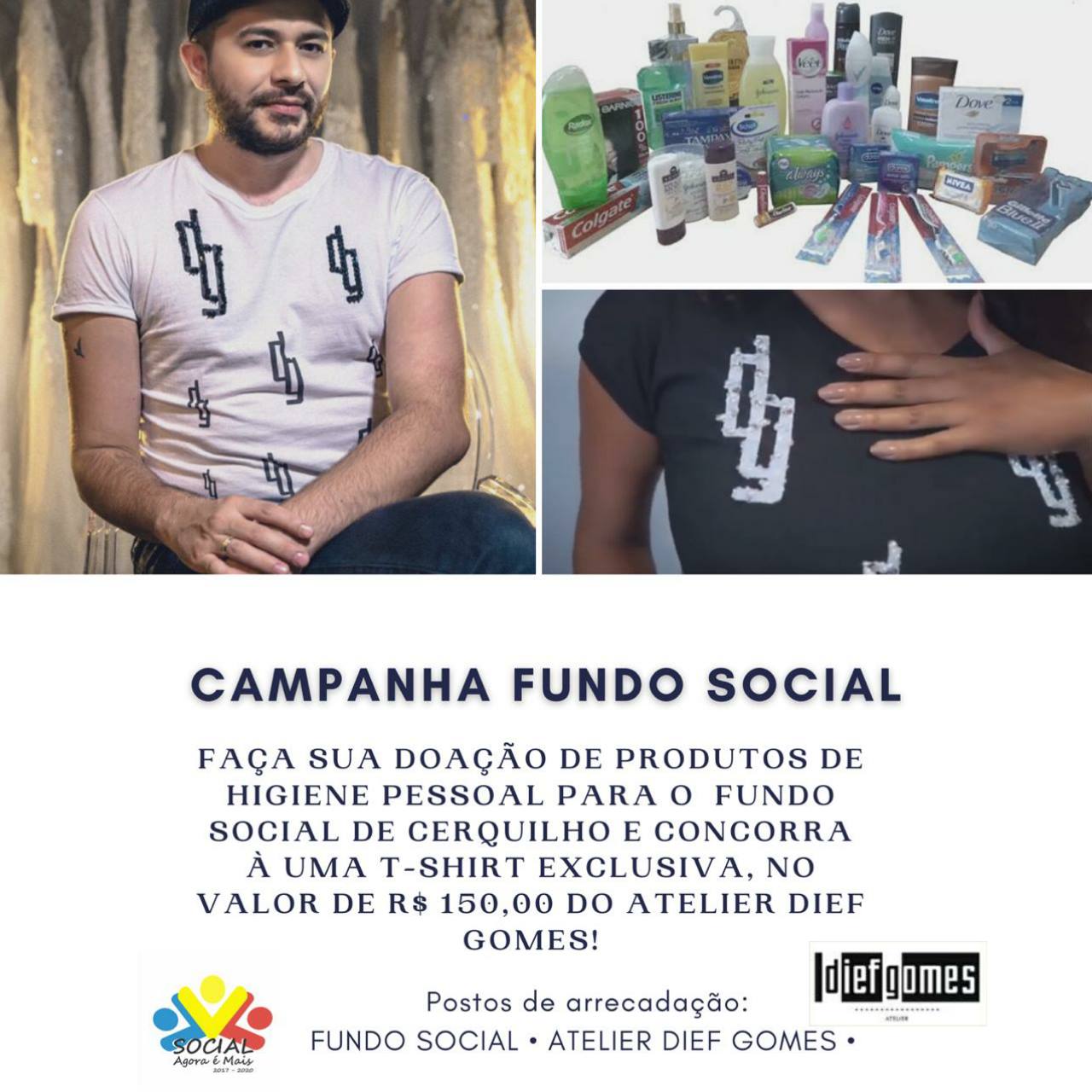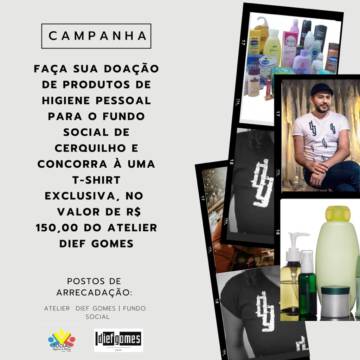 Para fazer parte desta corrente do amor faça sua doação de produtos de higiene pessoal para o Fundo Social de Cerquilho e concorra a uma T-Shirt Exclusiva, no valor de R$150,00, do Atelier Dief Gomes!!