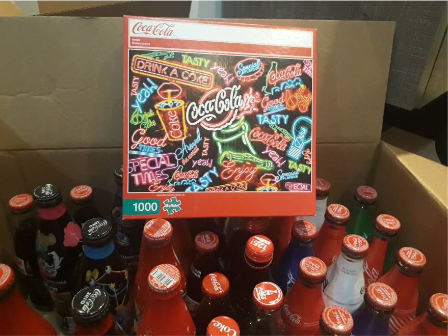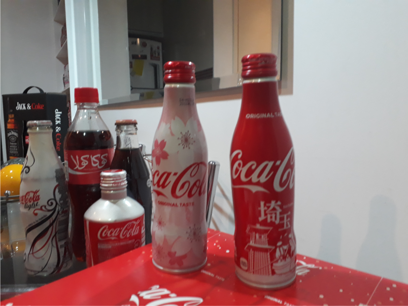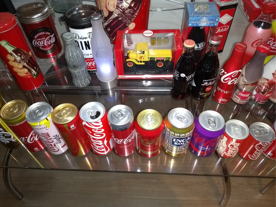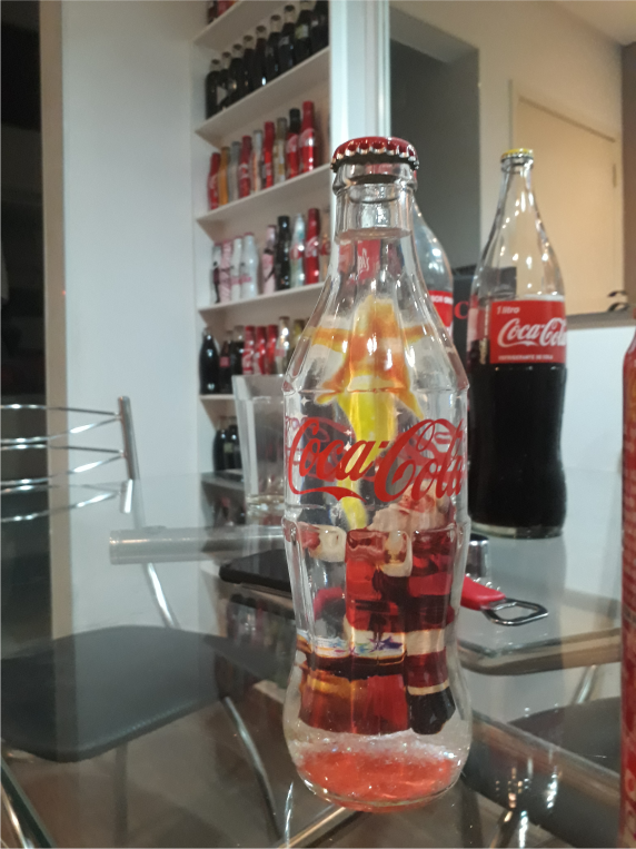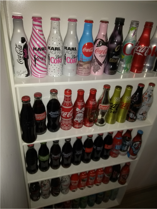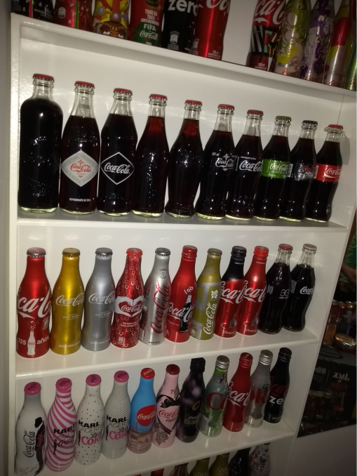 Ele organiza a sua coleção em prateleiras, onde deixa as que considera mais bonitas, e vai espalhando outras pela casa, guardando o resto em caixas! “Tenho mais de 180 garrafas, e contando todos os itens da Coca que tenho em sua casa, são mais de 300! Todas minhas garrafas expostas estão fechadas, mas nem todas vieram assim, pois tem países que não permitem que você as traga com líquido no avião, pois eles confiscam. Até pelo Correio tem algumas restrições.”