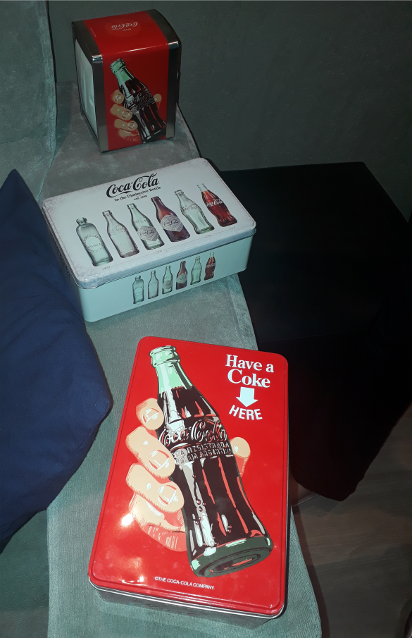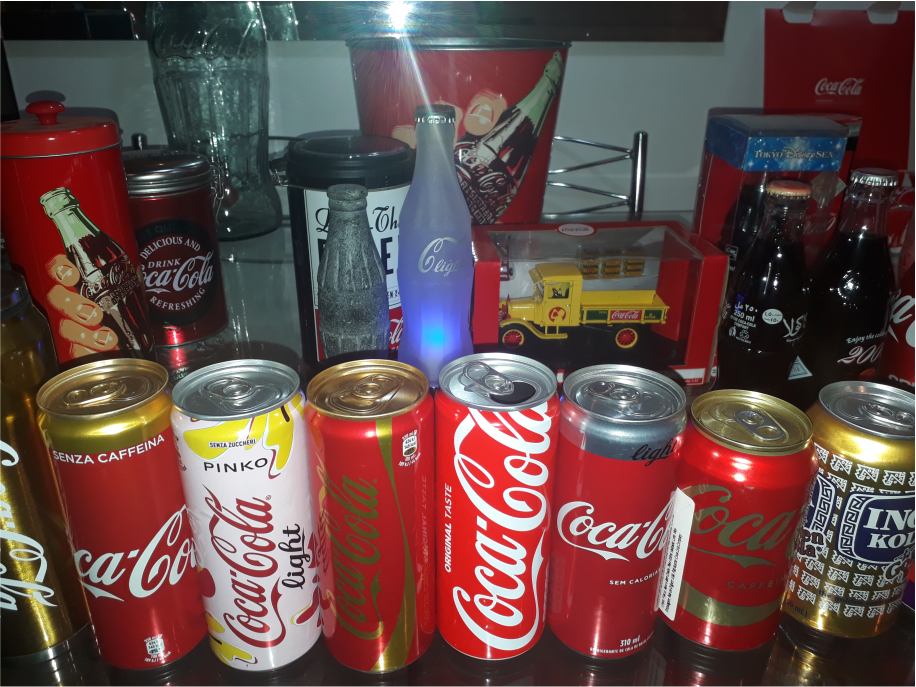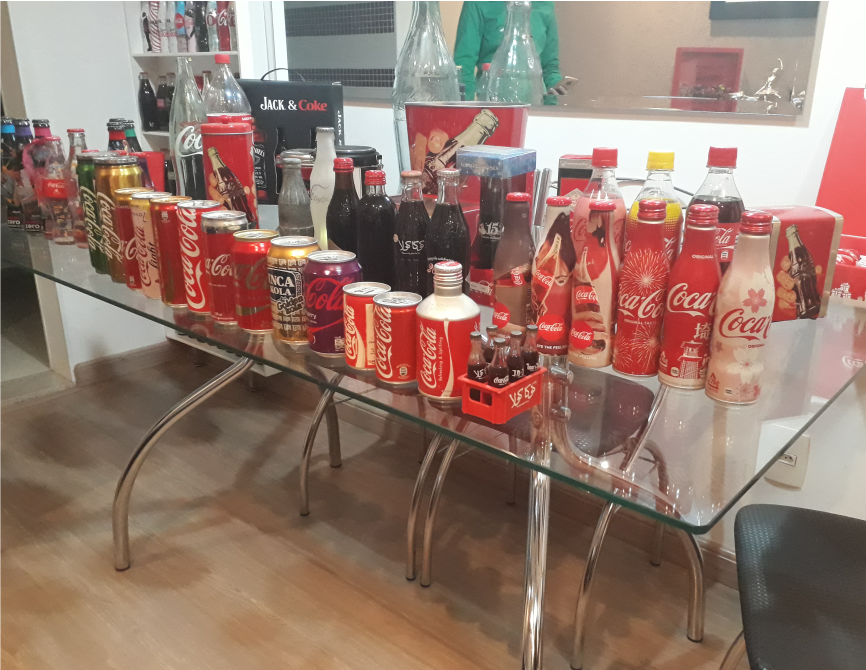 Ele coleciona qualquer coisa que for da Coca, mas seu foco maior são as garrafas! “Após conhecer o Seu Homero entrei num grupo de colecionadores de Coca no Facebook, e depois no Whatsapp, no grupo tem gente do Brasil inteiro e até alguns de fora, um dos grupos que eu mais converso tem quase 200 pessoas e só pode falar sobre Coca, seus produtos, lançamentos, etc. Você pode mostrar sua coleção, trocar ou vender produtos, sempre seguindo as regras do grupo.” Ele contou um pouco sobre o pessoal do grupo e suas peculiaridades, “Tem uns que são bons de lábia, que apazíguam o grupo, e todos são gente boa!”