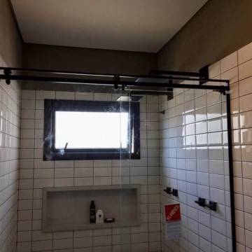 Em uma propriedade rural, criamos esquadrias amplas, permitindo uma integração perfeita com a natureza circundante. O uso de vidros temperados garantiu segurança, enquanto o design minimalista se encaixou perfeitamente na arquitetura moderna da residência.