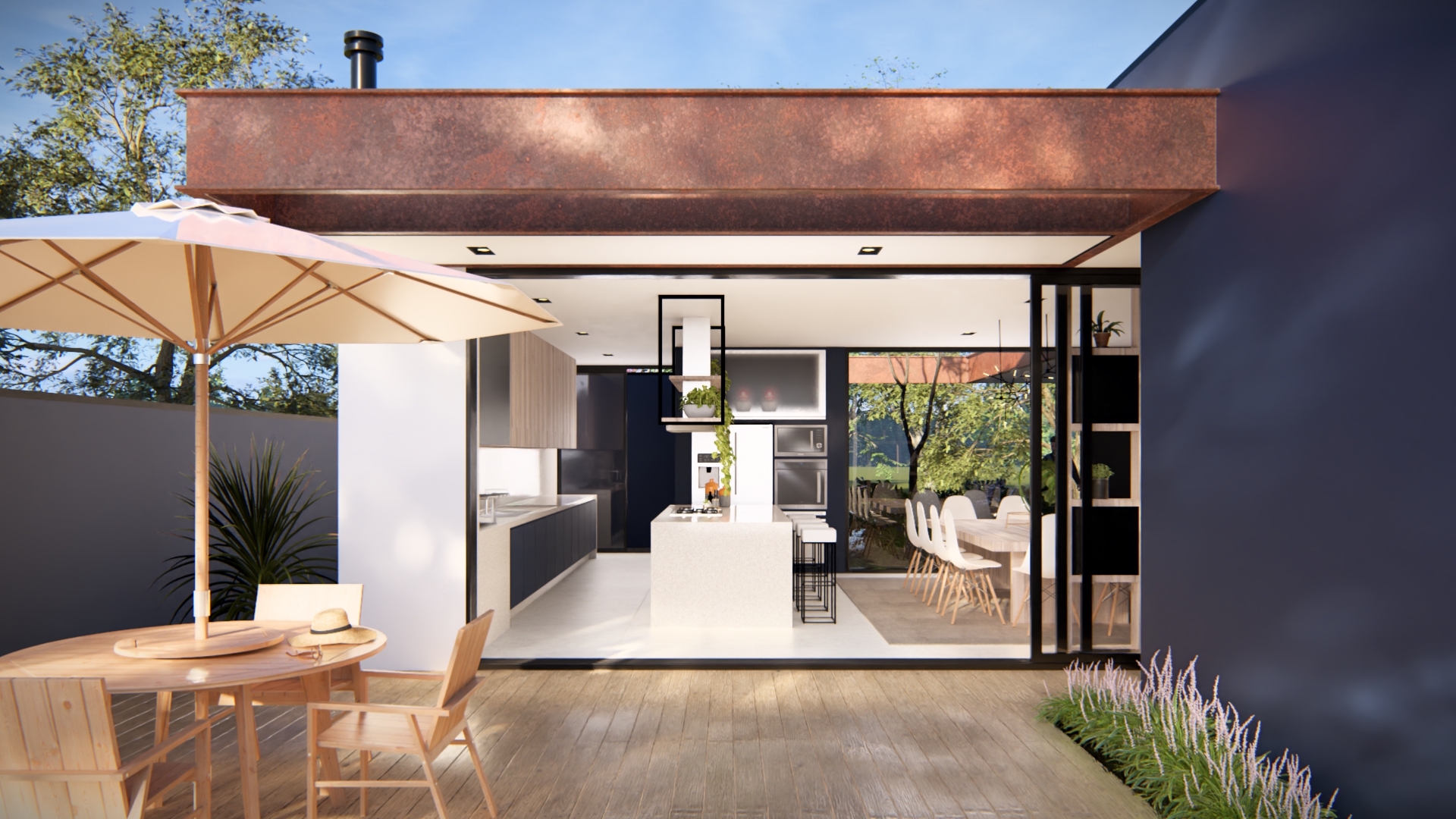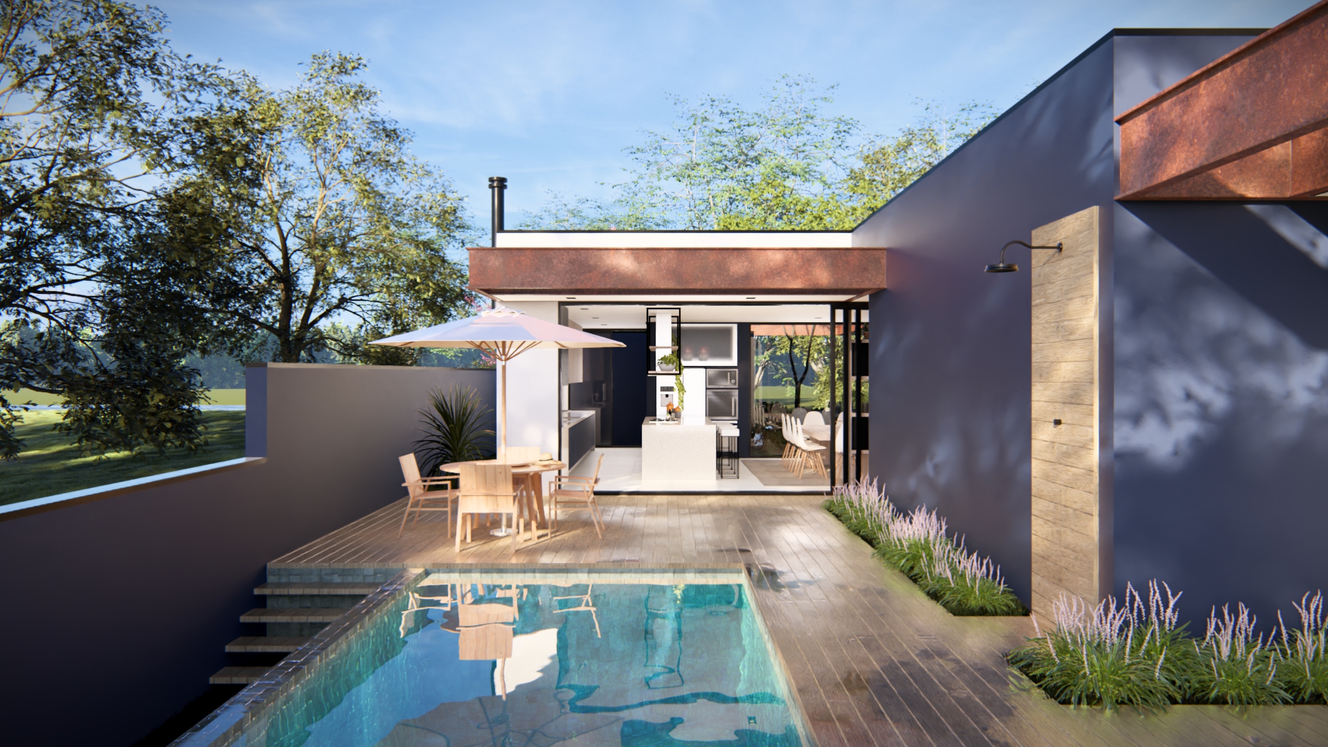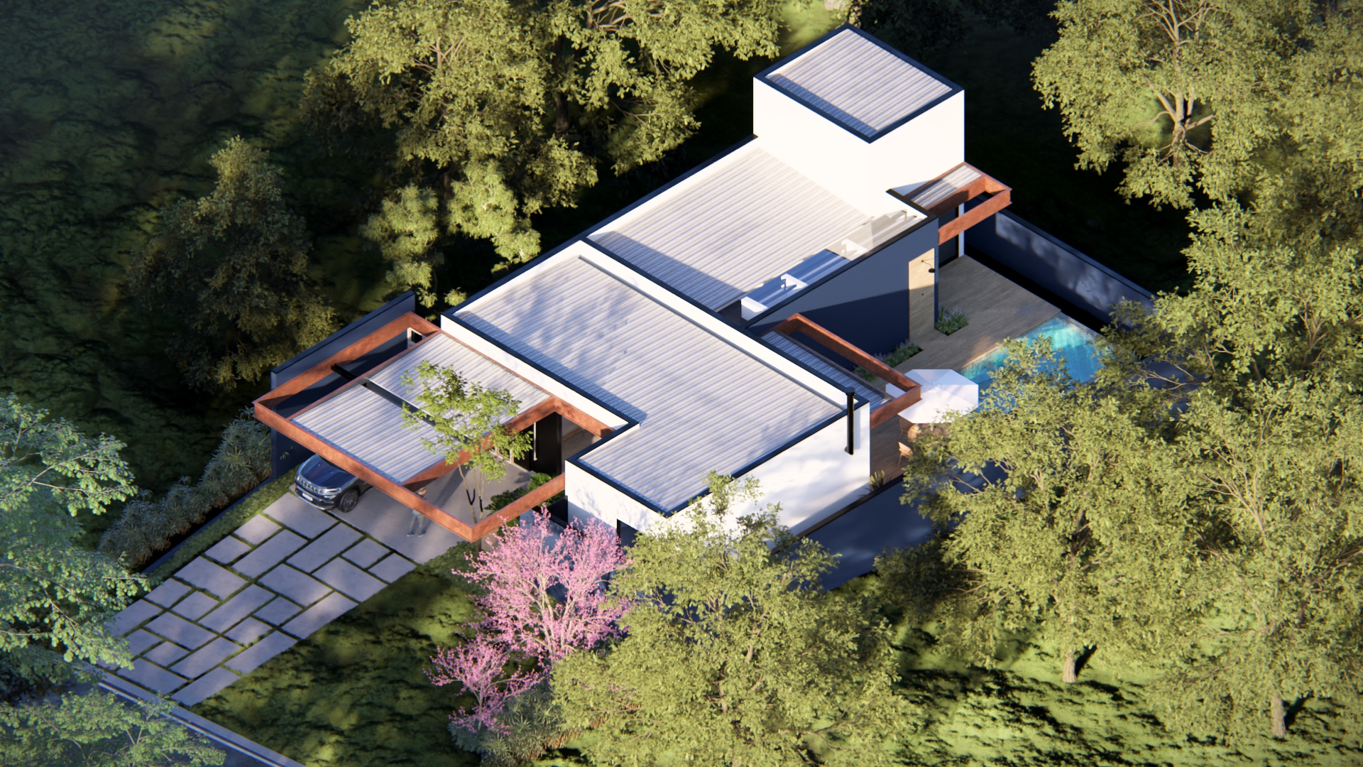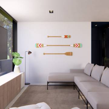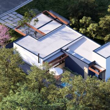 A Residência Cícero combina elegância e funcionalidade em um projeto que valoriza linhas retas e integração total com o entorno natural. A estrutura leve, marcada pelo uso de aço, madeira e vidro, cria uma atmosfera contemporânea e acolhedora. Os espaços internos foram pensados para fluidez e bem-estar, expressando o compromisso da TX Engenharia em transformar ideias em experiências de vida únicas.